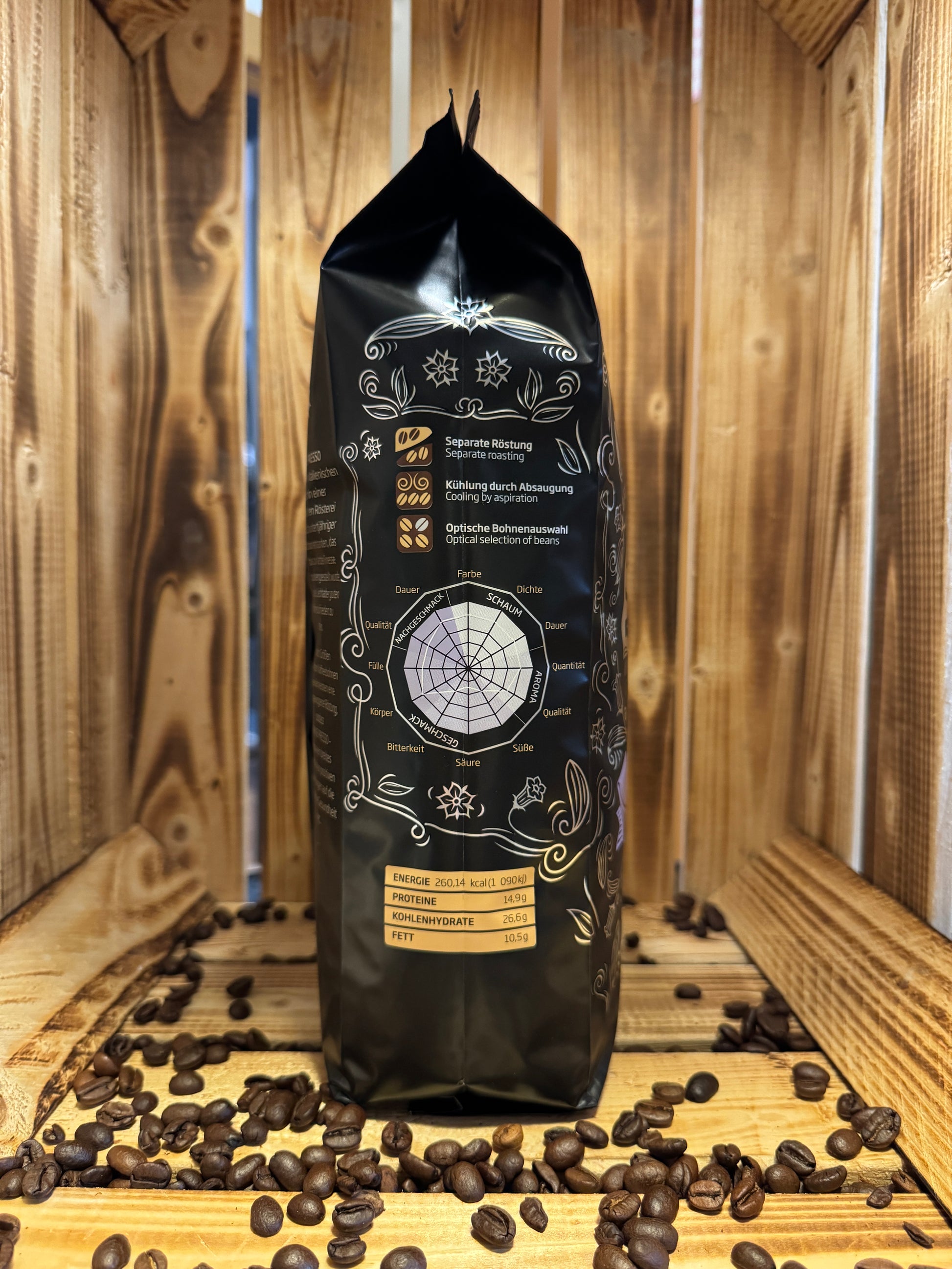 VIOLET besticht durch ein raffiniertes Aroma und einen intensiv samtigen Geschmack, der wie zartschmelzende Schokolade auf der Zunge zergeht. Nach einer sorgfältigen optischen Auswahl der Bohnen sorgt ein präziser Lasersortierer für höchste Qualität und die optimale Reife der Kaffeebohnen. Ein entscheidender Schritt im Veredelungsprozess ist die Aufteilung der Bohnen in drei Fraktionen – nach Größe sortiert. Diese exakte Abstimmung garantiert eine gleichmäßige Röstung, die den einzigartigen Geschmack und die Gesundheit des Kaffees bewahrt.